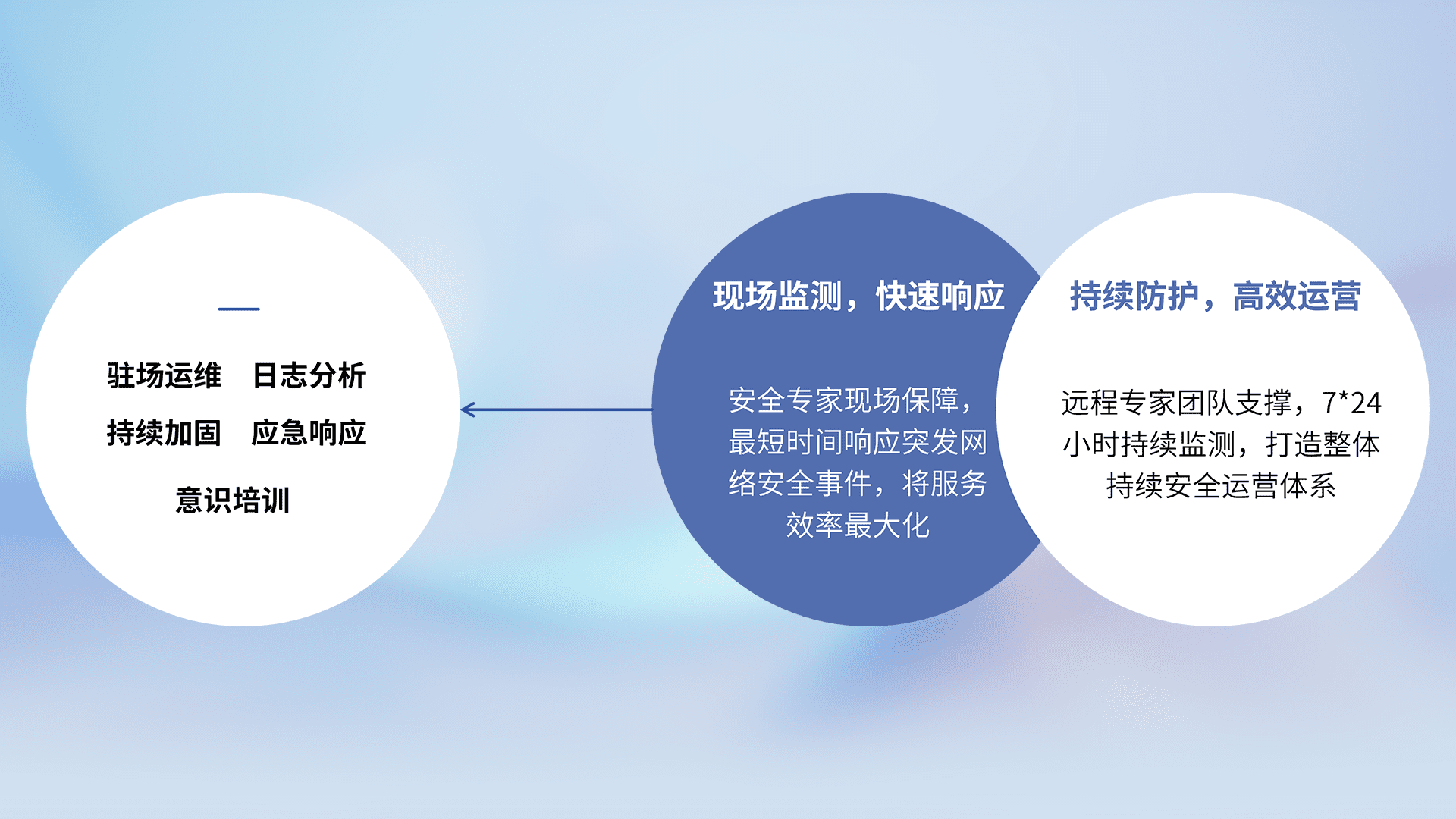 针对客户行业特性,,,提供专属的一站式安全管理服务,,,帮助客户全面感知网络空间威胁,,,,通过安全专家的线上、、、、线下防护支持,,,,实现风险闭环,,将安全保障常态化,,,,为客户打造常态化安全运维运营服务。。